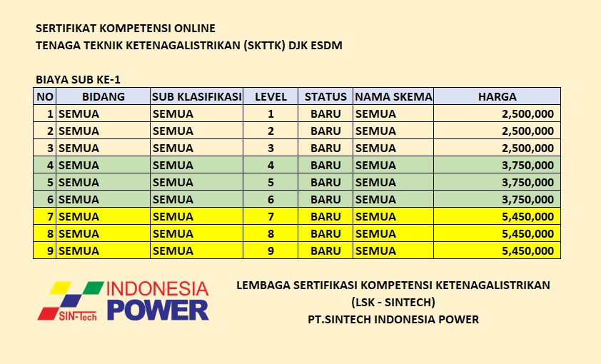 DAFTAR HARGA SERTIFIKASI